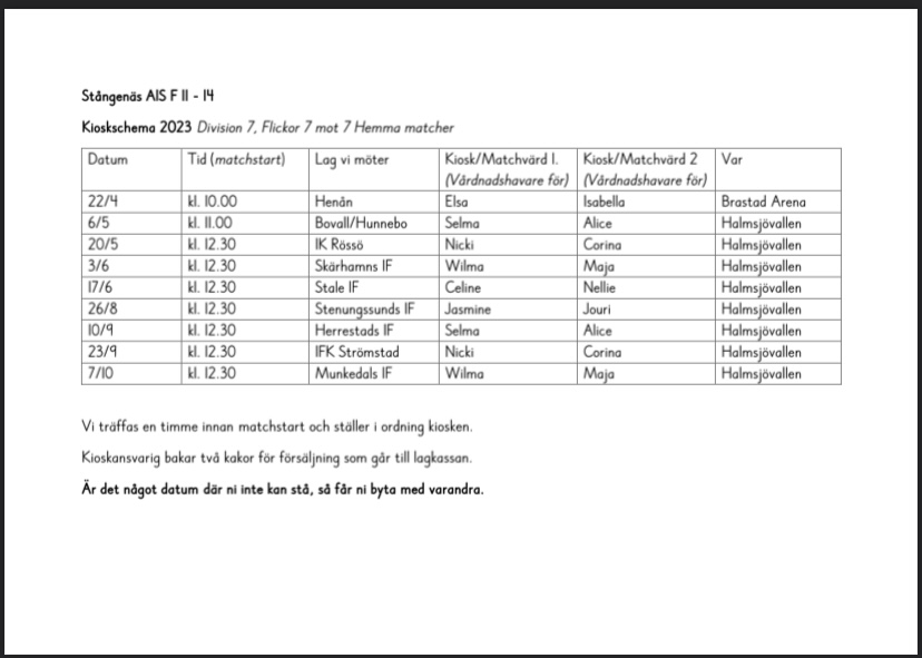 Följ oss för uppdateringar| Kioskshema 2023 1 | |