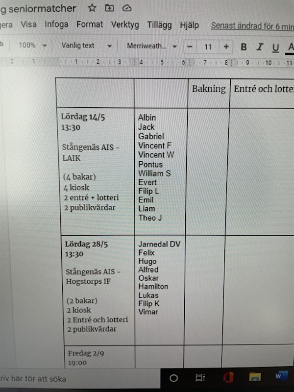I bilden ser ni också vilka roller vi behöver. De som bakar, behöver inte vara där under själva matchen.