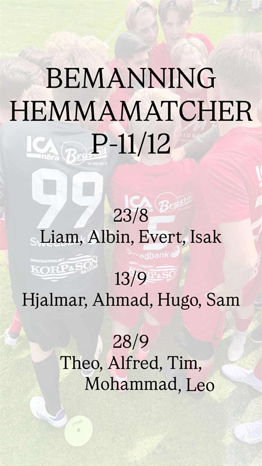 Eftersom vi inte fick våra matcher förens väldigt sent så har tyvärr inte kallelser eller bemanning blivit klart förens nu..