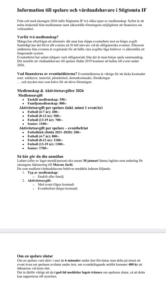 Klicka på bekräftelselänken i det mejl vi skickat dig för att börja ta emot uppdateringar från Stigtomta IF P/F 17.