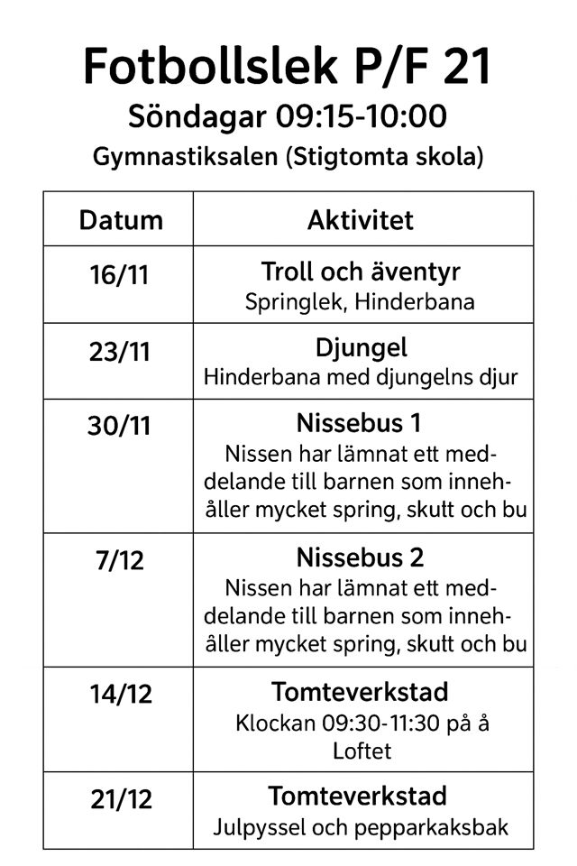 Klicka på bekräftelselänken i det mejl vi skickat dig för att börja ta emot uppdateringar från Stigtomta IF P/F 21.