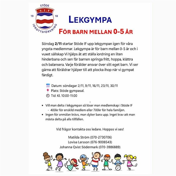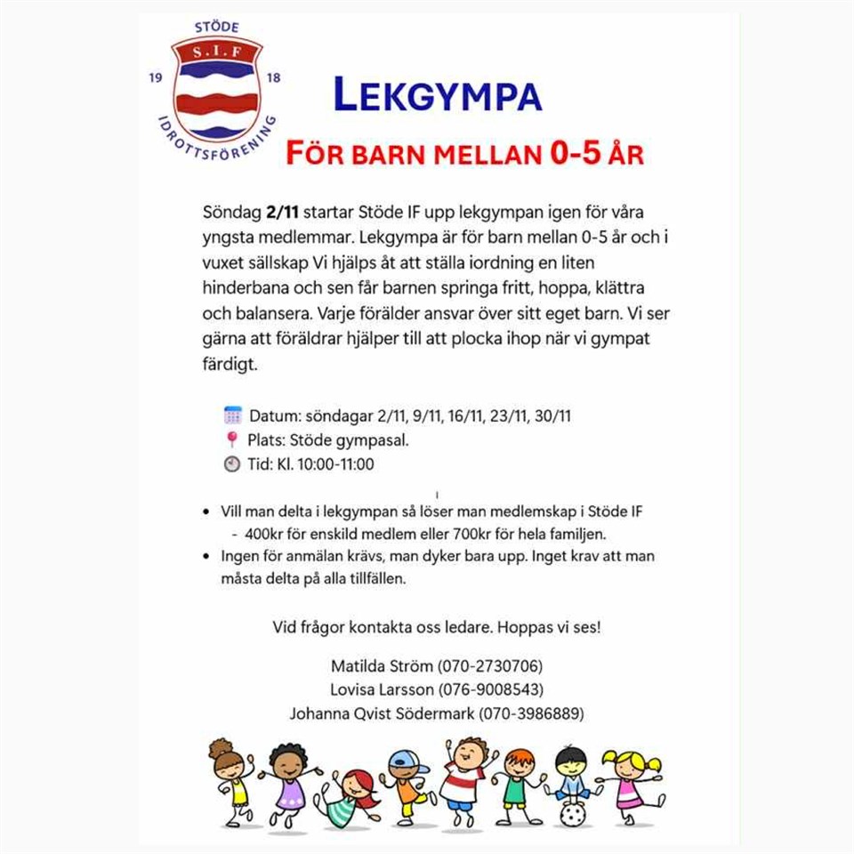 På söndag startar Stöde IF upp lekgympan igen för våra yngsta medlemmar