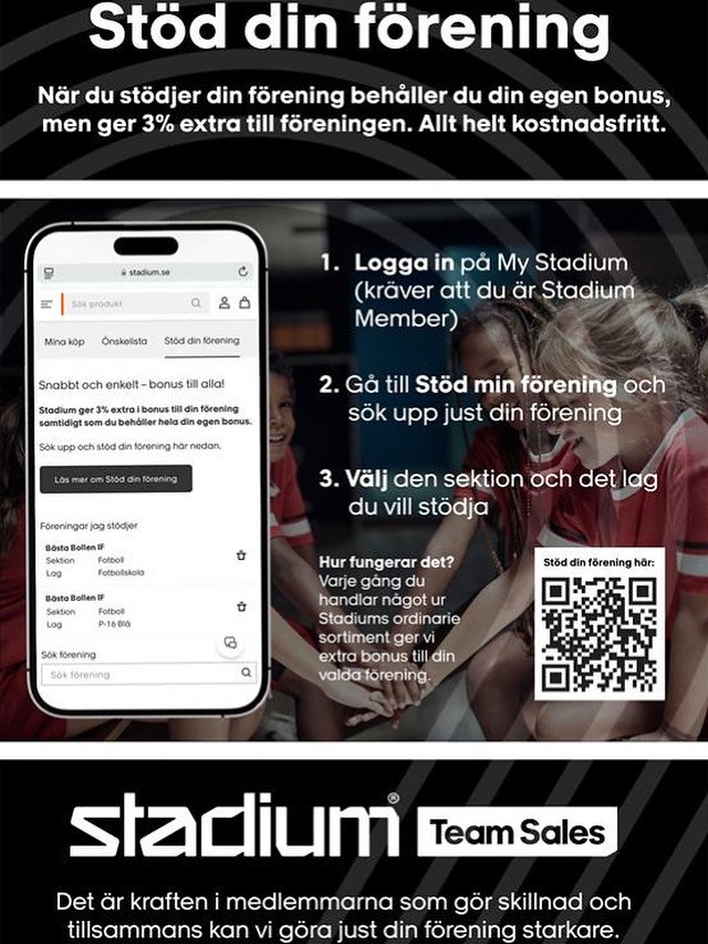 Vi vill passa på att tacka alla er som valt att stötta oss i Stöde IF via Stadium, MEN vi tror att vi kan ännu bättre! Om alla som vill stötta föreningen går in och gör detta (info i bilden) så får Stöde IF ett stort stöd och vi kan då utveckla ungdomarnas idrottande ännu mer!🙏❤️💙 TACK?