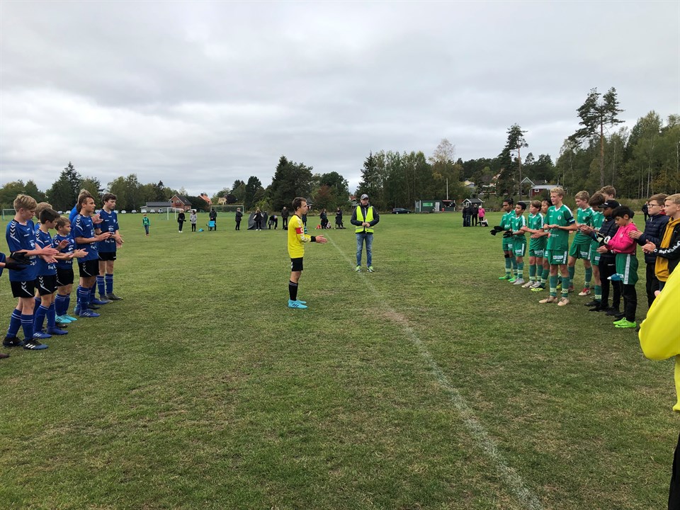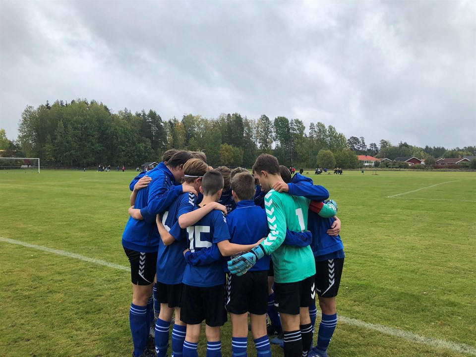 Slutspelsserien rullar på och idag var det dags för ett besök i Enstaberga utanför Nyköping för att möta IK Tun. Detta var tredje gången vi möttes i år och detta möte blev precis som de tidigare - en mycket jämn tillställning. Överlag gör vi en bra match idag. Planen är hård och ojämn vilket gör den lite svårspelad. Men vi försöker spela och gör det riktigt bra stundtals. Vi rullar bollen fint i backlinjen för att bygga upp våra anfall. Fint och se en hel del krossbollar för att komma åt en öppnare sida. Vi tar mycket löpningar utan boll idag vilket möjliggör en hel del fina bollar i djupled där vi kan hota Tunmålet med både inlägg och skott. Men båda lagen försvarar sig väl och det blir en målsnål match. Vi tar ledningen 0-1 i 16:e miunten i 1:a då Anton snappar upp en boll från Tuns backlinje och avslutar fint i mål. Denna ledning håller vi ända till sista perioden och 4 minuter kvar på matchen, då Tun får en frispark utanför straffområdet som nedrigt letar sig förbi muren och in vid stolp roten. Sista minutrarna på matchen har vi ett bra tryck med en dubbelhörna som tyvärr blir resultatlös. Slutresultatet skrivs till 1-1. Utöver målen var det en hel del chanser åt båda hållen med både fina målvaktsräddningar och ramträffar. Vi ledare är väldigt nöjda med grabbarnas inställning och prestation idag! Ta med er det inför de sista två matcherna som vi har kvar på detta år! Sen kan vi alltid finslipa på detaljer och timing. Vi delade ut vårt gröna kort till Tuns lagkapten då vi tyckte att de som lag är väldigt justa och uppvisar bra fairplay. Tuns gröna kort tilldelades Anton. //Ledarna