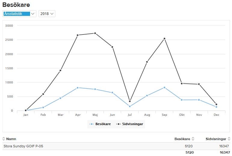 Hej Alla, Hoppas ni alla haft en riktigt God Jul. Här kommer lite statistik från vårt första år på laget.se Riktigt kul läsning med över 5000 besökare och 16000 sidvisningar!! I snitt över hela året är det ca 100 besökare i veckan och det är många utomstående som läser vilket är kanonkul. Vi får inte glöma bort att vi är en liten förening och lag/trupp Ha det bra så hörs vi snart vidare igen! Mvh Ledarna