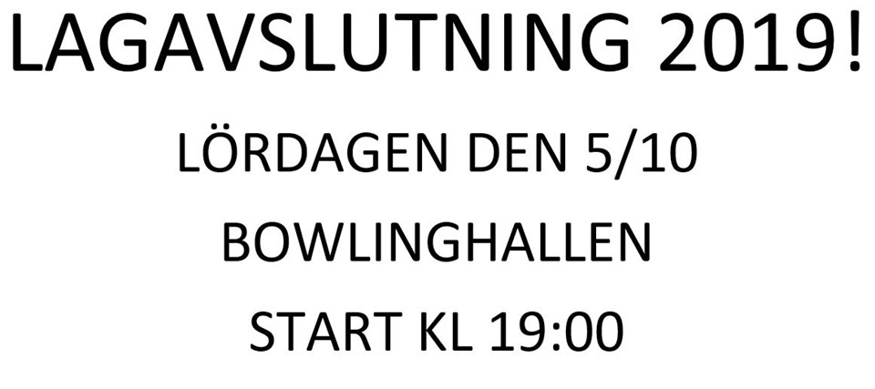 Hej Alla! Efter sista matchen lördagen den 5 oktober kommer vi ha en lagavslutning i Bowlinghallen i Eskilstuna. Vi startar upp med två serier bowling kl. 19:00 Efter det är det beställt hamburgare med tillbehör på plats i Bowlinghallen. Vi räknar med att alla våra 12 spelare kommer (om ni har förhinder får ni meddela här). Vi har bokat 25 platser vilket betyder att föräldrar och syskon kan följa med. För alla spelarna och ledare bjuder föreningen på hela arrangemanget :) Övriga får betala 110 kr för två serier bowling och 140 kr för maten. Viktigt att i god tid anmäla här vilka som följer med och om man skall spela och/eller äta. Matchen i Enhörna slutar ca 17:30. Så efter dusch och ombyte åker vi direkt mot Bowlinghallen. Runt kl 21:00 borde vi vara klara Hälsningar Ledarna
