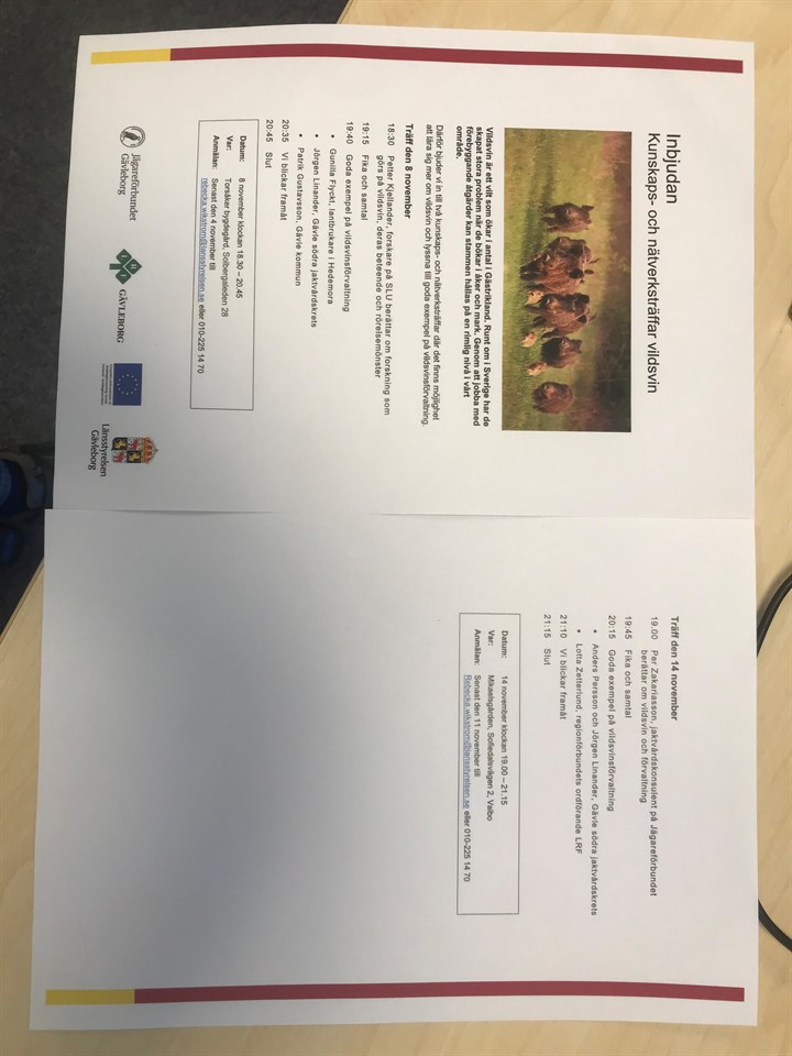 • Inbjudan ang. kunskap och nätverksträff vildsvin.