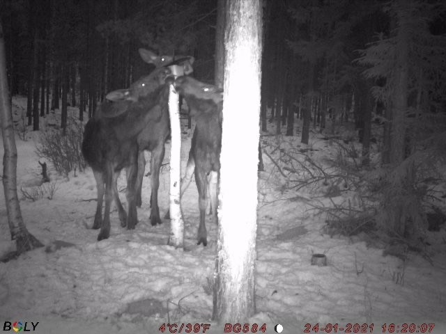Hej. Under senhösten har ju ko med 2st kalvar varit regelbundet vid saltestenen ca 300m sydväst om Jordans i Hyttmyra men för 2- 3 veckor sedan så blev ett vuxet hondjur dödat på järnägen då hon vistades där tillsammans med två andra älgar. Jag med flera antog det var kon till de två kalvarna som blev dödat. Plötsligt idag kom en bild där ko med två kalvar är vid saltstenen och slickar på den samt antagligen också käkar rådjurspellets jag lagt ut och man kan ju tänka det är samma djur som varit där tidigare i höst. Eller om det är ett annat ekipage som hittat saltsten; ingen vet med säkerhet utan var och en får anta om det är samma älgar som tidigare eller ett nytt ekipage. Kul iaf med ko och två kalvar vid saltstenen :-) /Kent Storviks Viltvårdsområde 24 jan 2021 0kommentarer