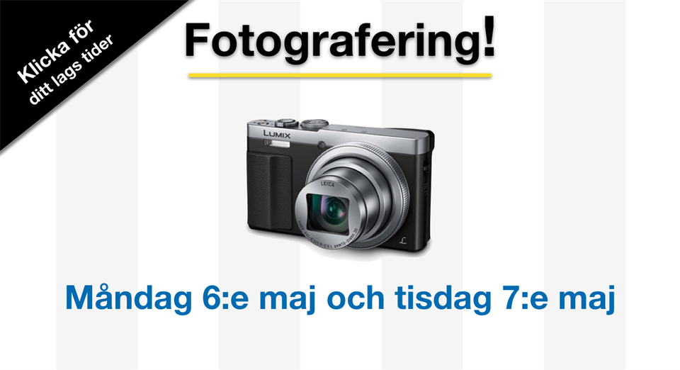 Tider för fotografering: Måndag 6 maj 17:30 P7 18:00 P11 18:30 P12 19:00 P13 19:30 U17 20:00 A LAG Tisdag 7 maj 17:30 P8 18:00 P9 18:30 P10 19:00 P14 19:30 P16 20:00 Styrelsen Fotboll P15/2010 3 maj 2019 0kommentarer
