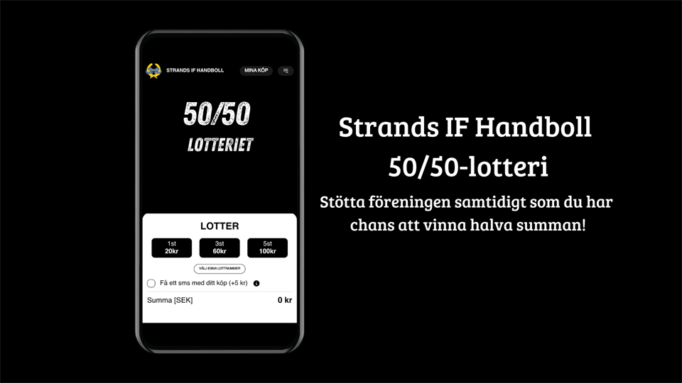 Häng med på vårat digitala 50/50-lotteri Till alla damernas hemmamatcher den här säsongen kommer vi ha det digitala 50/50 lotteriet öppet. Ny vinstsumma inför varje hemmamatch! Vi testade det här under kvalet förra säsongen och det blev lite av en succé. Ett enkelt sätt för Er att stötta föreningen, plus att man har chans att vinna halva potten. Win win! Lotteriet avslutas strax efter att matchen är slutspelad och vinner kontaktas på sms, och strax därefter kommer utbetalningen på swish! Vi kommer även ha QR-koder i Idrottshallen så man kan köpa på plats. För att delta i lotteriet måste du vara över 18 år och befinna dig inom Hudiksvalls kommun In på länken nedan för att köpa en lott! Köp din digitala 50/50-lott här
