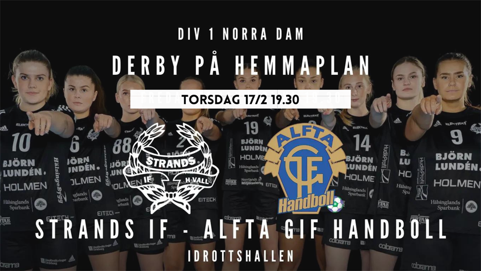 Strands IF och Alfta GIF är överens med Svenska Handbollsförbundet om ett nytt speldatum för det uppskjutna derbyt som skulle ha spelats fredagen den 21/1. Det blir istället ett TORSDAGS-derby Nytt matchdatum alltså; TORSDAG 17 FEBRUARI klockan 19:30 på Idrottshallen! Handbollsektionen 26 jan 2022 0kommentarer
