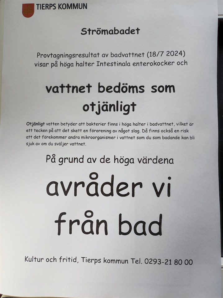 Provtagningen den 18 juli visade på höga halter Intestinala enterokocker och vattnet bedöms som otjänligt. På grund av de höga värdena avråder vi från bad. Preliminärt så tas nytt prov v. 32. Strömarens Naturvårdsförening 25 jul 2024 0kommentarer