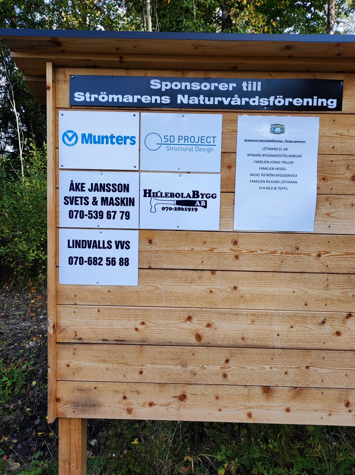 Nu är äntligen några sponsorskyltar på plats på anslagstavlan. Fler skall upp framöver. Finns det fler som vill vara med och sponsra föreningen så hör av er till vår kassör. Strömarens Naturvårdsförening 26 sep 2023 0kommentarer