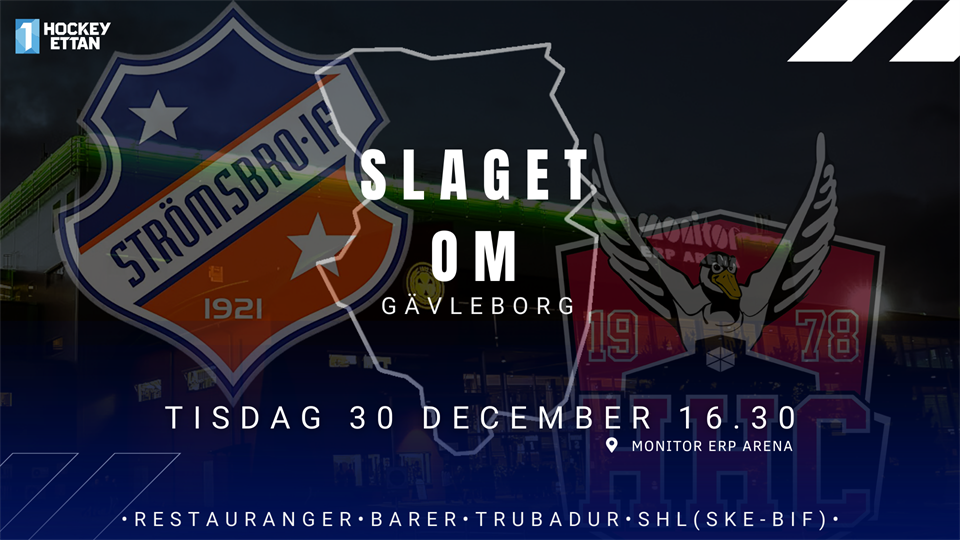 Säsongens hockeyfest går av stapeln i mellandagarna när slaget om Gävleborg flyttar in i Monitor ERP Arena. Restaurangen, Skybar, trubadur och diverse kringarrangemang. Boka biljetter redan nu och köp 50/50 lotter med möjlighet att plocka hem storvinsten.