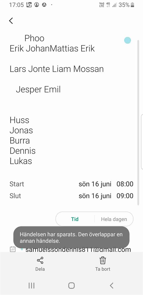 Jocke, Remen , Lars, Jonas, Johan, Nader ErikB, Rasmus, Dennis, Dunder, Liam, Jonte, Jesper, Emil. Samling kl 18 Blir varmt så börja drick tidigt Ta med dubbla VATTEN flaskor om ni kan