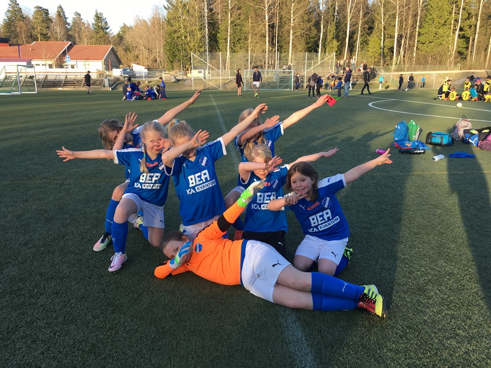 Den andra dagen på vårt träningsläger bjöd på fantastiskt väder! Tjejerna kom laddade och glada ned till Sturebyskolans BP efter äventyren dag 1. Upplägget dag två var som följer - två träningspass, med en lunch mellan - samt avslutning med totalt tre halvlekar mot två andra lag : Tullinge samt Bagarmossen/Kärrtorp (BKBK). Det första passet på morgonen var tänkt att fokusera på styrka och snabbhet men också glädje - och jag tror vi lyckades. Olas styrkeskola, speedträning och brännboll (fast med fotboll) stod på programmet. Efter en promenad upp till klubbhuset och en härlig lunch (tack igen alla föräldrar som hjälpt oss under helgen!) hade vi lite tid att döda på gräsmattan utanför i solskenet - underbart! Det andra träningspasset var i lugnare tempo, då vi hade flera matcher senare på eftermiddagen. Vi hann med både avslutsträning i olika former men också individuella samtal - mycket viktigt att få den tiden med alla tjejer! De avslutande matcherna bjöd på bra och trevligt motstånd, och glädjande nog även trevligt spel med bra passningskombinationer och flera fina mål. Efter en härlig helg är nog de flesta rätt tröttkörda - det är i alla fall vi i ledarteamet 😀 Nu har vi en spännande säsong framför oss med flera härliga fotbollsäventyr tillsammans! Ledarteamet Ola, Oskar, Lennart, Thomas och Calle tackar än en gång alla föräldrar som skjutsat, fixat mat, stått för inbjudningar och mer saker som jag säkert glömt - tack!