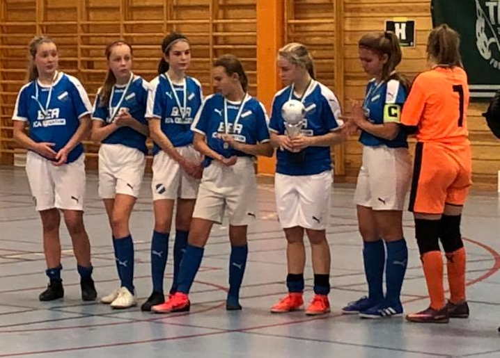 Grymma prestationer - men resultmässigt små marginaler och oflyt gav tre bronsplatser! Sent igår kväll tog ST-cupen slut för den här gången och vi kan summera spel i tre klasser där vi går från klarhet till klarhet. Vi matchar samtliga spelare som är hemma och alla visar verkligen att vår utveckling just nu är fantastisk såväl hos varje individ som i det kollektiva lagspelet. Det är såklart alltid lätt att bli enögd men i det här fallet var det inget snack om att åtminstone två finalplatser hade varit en naturlig utdelning sett till prestationen. När det kommer till resultat är det ändå så att fotboll såväl som futsal alltid går ut på att göra flest mål, och där var vi tyvärr inte bäst den här gången. Först ut var det lag som vi ställde på benen före nyår i F-14-Lätt. Gruppspelet består av dubbelmöten mot Tyresö och Älta där vi visar på en härlig intensitet och fart i spelet, vilket leder till att vi blåser motståndet av banan med 3-0, 3-0, 2-1 och 4-0. Det är otroligt glädjande att se hur duktiga den här gruppen är på att ta till sig instruktioner och följa en spelidé. Vi skapar mängder av chanser på inövade varianter och via ett tydligt och strukturerat anfallspel. Försvarsspelet är rakt igenom vattentätt mycket tack vare en grym vilja från samtliga spelare att underordna sig laget. I slutspelet hamnar vi trots gruppseger tillsamans i en slutspelsgrupp med en gannan gruppetta, Jarlabergs IF som tillsammans med oss har sett ut som det klart starkaste laget i klassen, och vi vet att det kommer att bli en tuff utmaning att vinna gruppen och ta sig till final. Jarlaberg inleder med att slå det tredje laget i gruppen, Enskede IK med 2-1 och därefter ställs vi mot Enskede. I en mycket väl genomförd match tar vi en 3-0-seger och har därmed att se fram emot en ren semifinal mot Jarlaberg, där ett oavgjort resultat räcker för en finalplats. Matchen mot Jarlaberg blir inledningsvis tajt och vid ett tillfälle får en av Jarlabergs skottstarka backar utrymme att lossa kanonen och 0-1 sitter bakom vår målvakt som för dagen är inlånade utespelaren Juni Nordlöf från F-06. Stort tack Juni för en strålande insats och ett änne mer strålande mod att utan att tveka kliva in mellan stolparna och kriga när vi fick ett sent bortfall i truppen! Resten av matchen handlar om vår jakt på kvitteringen och det saknas sannerligen inte chanser...marginalerna var dock inte på vår sida den här gången när bollarna smiter tätt utanför eller räddas av en duktig motståndarmålvakt. Självklart var det mycket besvikna tjejer som sörjde en mer än väljförtjänt finalplats, men från ledarhåll är vi så nöjda med er insats och kan konstatera att vi har vuxit ur den här klassen.