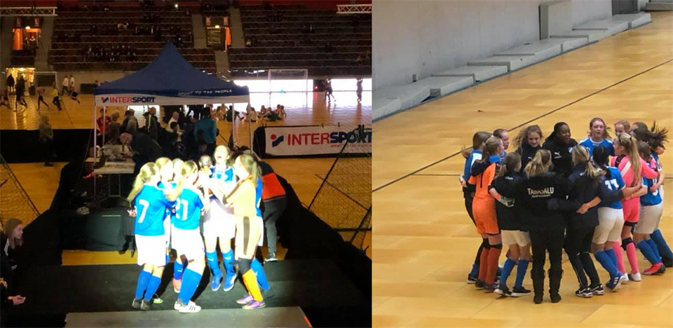 Välförtjänt och efterlängtat guld i Göransson Cup efter fina prestationer! Nästan på pricken ett år efter att bägge våra lag lämnade Sveriges största futsalcup via bittra strafförluster kunde vi nu återvända för revansch. Och vilken revansch det blev. Storstilade insaster av alla spelare i båda lagen värmde både ledare och tillresta supportrar. Glädjen var enorm när bägge lagen tillsammans kunde hissa den åtråvärda Göransson Cup-pokalen till skyn efter 3-0 i finalen mot IFK Västerås. En riktig Sturpen-helg med härligt häng, mycket kämpa och ännu mer kreativt futsal-lir... Äntligen var det dags för vinterns favoritresmål Sandviken när fina Göransson Arena slog upp portarna för cupen med (nästan) samma namn. Återigen checkade vi in på Scandic Väst i Gävle som precis som förra året var intaget av Söders Blå som i år var representerade hela vägen från F-05 till F-08. Hotellet bjöd som alltid på skönt häng och bra mat, och vi kan återigen konstatera att det är en ynnest att få vara ledare i det här laget. Det är glada miner och ett lag som håller ihop oavsett om klockan är runt midnatt och alla är sega efter matchen eller om det är uppstigning 06.30 för frukost. Med så fina tjejer och så mycket garv går det liksom inte att misslyckas. Resan startade 16.30 från vår traditionsenliga mötesplats utanför Sturebyskolan där även Gabi & René väntade för ett kärt återseende. 15 spelsugna tjejer och 4 ledare gjorde resan den här gången och fördelades på två lag. Lag Vit fick äran att inleda matchspelet mot välbekanta Ingarö som alltid bjuder på härliga kämpatakter. Ett spelsuget Sturpen fick dock upp tempot direkt och satte 6-0 efter många fina kombinationer. Strax efter 23-tiden var det så dags för Lag Blå att kliva in i turneringen och trots den sena timmen var det idel pigga tjejer som tog sin an den svåra uppgiften att forcera den buss som Vallentuna hade parkerat på egen planhalva. Det saknades sannerligen inte tillfällen men Vallentuna visade som alltid upp ett imponerande försvarsarbete och matchen slutade 0-0. Inga sura miner för det dock, däremot hördes vissa klagomål på att vi även i år missade tacobuffén i hallen... Lördag inleddes med sovmorgon och därefter heldag i hallen. Dagens första matcher gick parallellt och Lag Blå klev ut till spel mot IFK Västerås med härlig energi och tog en riktigt stark 2-0-seger mot bra motstånd. Riktigt bra skulle det visa sig, då motståndarna till slut tog sig hela vägen till en silverplats. Lag Vit fortsatte på det inslagna spåret och visade upp härlig spelglädje och en fruktansvärd ineffektivitet mot IK Huge, men kunde ändå avgå med segern med 4-0. På kvällen skulle sedan grupperna avgöras. Lag Vit var redan klara gruppsegrare i teorin men blev det sedan också i praktiken när de fick många på läktarna att glädjas över att de skippat kvällens avnitt av Talang för att istället se på grym Futsal. Skultuna IS kämpade grymt matchen igenom men siffrorna skrevs till slut till 5-0 i Sturpens favör. Lag Vit behövde en seger i sista matchen mot New Mill Indians för att säkra gruppsegern men fick en tuff start med ett tidigt baklängesmål. Kvitteringen kom dock en bit in i matchen och resten av fajten blev verkligen just en fight. Grymt kämpande indianer från Nykvarn lyckades med en fantastisk glöd att freda sitt mål trots att tjejerna från Söders Blå öste på för fulla muggar. 1-1 efter full tid innebär ändå att även Lag Blå kunde avancera vidare till slutspel obesegrade. Om lördagen innebar sovmorgon så följde söndagen traditionen med uppstigning i ottan. Trots det var de en samlng pigga tjejer som mötte upp till frukost och upptaggning inför dagens slutspel. Lag Vit ställdes mot Skiljebo SK och inledde riktigt piggt. Tyvärr kom inte utdelningen och istället smet 0-1 in bakåt. Här fick vi tyvärr också se att ork och tro tröt lite för mycket för att kunna komma tillbaka i matchen. En ok insats, men den här gången hade det krävts lite mer vilja för att ta sig vidare och för Lag Blå stannade det därmed vid åttondelsfinal den här gången. För lag vit fortsatte resan med åttondelsfinal mot Örby IS som ju är våra allra närmaste grannar och ett lag som vi mötte nästan jämnt i knatteåldern. De senaste åren har det dock varit väldigt långt mellan mötena och en spännande match mellan många klasskompisar väntade. Söders Blå var mer än lovligt taggade från start och satte plattan i mattan. 3-0 efter bara några minuter blev till slut 7-0 efter många riktiga mönsteranfall och en härlig intensitet. I kvartsfinalen väntade sedan Skiljebo SK som ju tidigare slagit ut Lag Blå ur turneringen. I en tät match där vi inte har förmågan att förvalta våra chanser i tillräckligt stor utsträckning får vi ändå utdelning i rätt lägen och kan ta oss vidare till semifinal efter 3-1 och turneringens första insläppta mål. Inför turneringen hade vi ett samtal om målsättning och förväntningar kopplat till den resa i prestationspsykologi som vi är inne på, och i semifinalen fick vi verkligen testa teorierna i praktik. Efter en riktigt stark inledning med mängder av målchanser hamnade vi i underläge efter en vacker soloprestation. Med sex-sju minuter kvar fann vi oss i ett läge där vi började få slut på idéer mot en lågt stående box och med bollar som smet överallt i närheten av målet utom just in i nätet. En liten taktisk förändring senare och med exakt den inställning som vi hade pratat om innan så kunde vi den här gången avsluta matchen som segrare med 2-1. Alla fina mål och det grymma spelet i all ära. Detta var ändå turneringens höjdpunkt där alla spelare visade med handling att vi vågade tro på vårt eget spel, och metodiskt arbeta vidare trots att allt inte rullar på som vanligt! I finalen väntade sedan IFK Västerås som gått starkt 