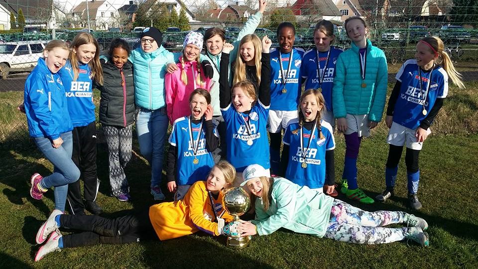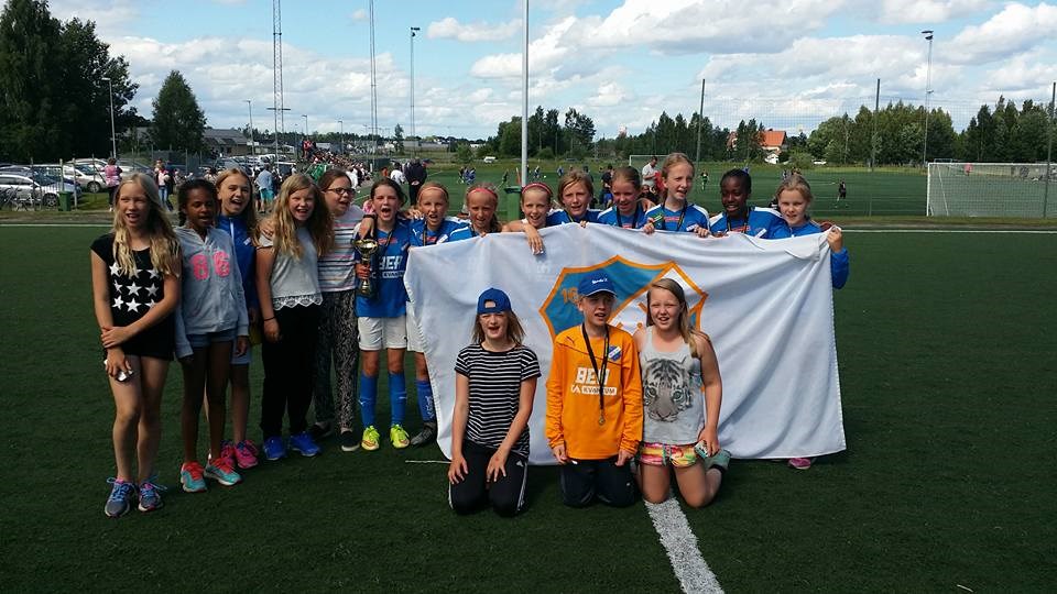 En fantastisk helg avslutades på bästa tänkbara vis när Sturpens fantastiska tjejer tog hem guldet. Gruppspelet på lördagen präglades till viss del av lotter och kafétjänst och det var inte förrän i sista gruppspelsmtachen mot Vallentuna som vi kände igen våra tjejer fullt ut. Vi var tillbaka och hade ett otroligt fint spel i högt tempo. Finaldagen bjöd på en fantastisk inramning. Sol, stor publik, underhållande fotboll och mycket glada tjejer som var där för att kämpa om medaljerna. I lättgruppen hade våra tjejer kämpat stenhårt för att ta sig till B-slutspel, de blev bättre för varje match och det var tydligt att vi har fin teknik och goda intentioner i vårt spel. Tyvärr lyckades vi inte fullt ut omvandla det i resultat men vi är mycket stolta över inställningen och viljan att spela fotboll, det lovar väldigt gott för framtiden! I svårgruppen hade vi Stocksund i semifinal. Ett lag som vi har mött många gånger och imponerats av deras spelskicklighet. En mycket välspelad match stod länge och vägde med fina kombinationer i hög fart från båda lagen. Vi gick slutligen segrandes ur den bataljen mycket tack vare förmågan till ett rakare spel och en okuvlig vilja att inte förlora. I final väntade ett spelskickligt Vallentuna som vi historiskt har haft svårt mot. Söders Blå verkade ha glömt bort det och satte sedvanlig full fart från start. Det var enormt imponerande att se tjejerna spela i högt tempo med fina kombinationer och en okuvlig vilja i varje närkamp. Två mycket duktiga målvakter i båda lagen tvingade fram en förlängning i form av sudden death. Vi var lite oroliga för att tjejerna skulle vara lite slitna efter urladdningen men det märktes inte. Plattan i botten och ett hårt tryck mot Vallentunas målvakt som storspelade i förlängningen. När fem sekunder av förlängningen återstod kunde hon dock inte stå emot längre och hon fick se ett stenhårt skott i sitt vänstra kryss. Total glädje utbröt och segervrålet hördes ända till Örby! Det var fantastiskt att se hur glada tjejerna blev och lika fantastiskt att se hur glada alla föräldrar blev, allt hårt slit lönade sig och det blev betydligt enklare att plocka ihop allt efter cupen med segerruset i kroppen. Ett stort tack till alla tjejer som tar med oss på den här härliga resan och ett alldeles extra stort tack till alla fantastiska föräldrar som gjorde helgen till vad den blev. Tack!