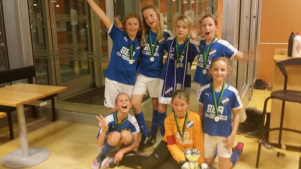 Besvikelse byttes mot segerglädje! En stor del av charmen med idrotten är verkligen att det är små marginaler mellan tårar och segeryra. De senaste dagarna har söders blå definitivt fått känna på lite av varje...Äventyret började med spel i ST-cupen svår i måndags där spelet var spänt och tillknäppt och vi inte alls fick till det som vi är vana med. Trots seger mot slutsegraren Tyresö blev det inget slutspel då vi hade marginalerna emot oss och åkte på två 0-1-förluster. Besvikna tjejer lämnade Tyresö långt ifrån mätta på spel, och vad händer...på kvällen får vi en förfrågan om att ta en återbudsplats till Stuvsta Indoor, och det var såklart inget att tveka på. Förändrad taktik och återfunnen trygghet och glädje Sagt och gjort. Dagen efter klev vi in i gruppspelet där vi ställdes mot Sätra, Stuvsta och Värmdö. Nu fick vi också möjlighet att lägga om spelupplägget lite vilket föll riktigt väl ut. Borta var ängsligheten och det statiska spel som vi upplevt dagen innan, och tillbaka var energi, glädje och kreativitet. Sätra och Stuvsta slogs tillbaka med 2-1 respektive 6-0 innan det blev förlust med 2-1 mot Värmdö i en match som vi förde och sett till målchanser borde ha tagit hem. Till slutspel som gruppsegrare trots förlusten. Härligt lir gav guld i slutspelet! I slutspelet som avgjordes i gruppform var det aldrig någon tvekan. Guldet skulle hem till Sturpen! Tjejerna bjöd på riktig härlig fotboll och gjorde det nu även i det vanliga höga tempot. AIK besegrades med 5-0, medan det blev 0-0 i mellanmatchen mot Huddinge trots sjukt många chanser. I finalen väntade återigen Sätra som vi känner väl och har haft många tuffa duster med. Den här gången satte vi dock plattan i botten från start och gav inte Sätra någon egentlig chans. Chanser skapade vi dock en hel del av men utan att lyckas få dit bollen. Riktigt förlösande då när Nova förvaltade vårt tredje frisparksläge på bästa sätt med en kanon i nättaket. När sedan Elise kort därefter snodde bollen på mittplan och fri med målvakten rullade in bollen mellan benen var saken klar! En riktigt bra match mot en stark och duktig motståndare. Vi lär ses igen framöver. Samtliga tjejer förtjänar allt beröm i världen dels för den fina underhållningen och det vackra spelet men också för den härliga lagmoralen där de verkligen visade hur man kan lära sig av förluster. Dessutom fick vi nog alla känna att det faktiskt blir ännu härligare att vinna om man också förlorar någon gång ibland. Lite extra kredd måste ändå ges till Gertrude som trots lite känningar i knäet kom till slutspelet och inte bara ställde sig i mål utan också gjorde det på ett riktigt imponerande sätt och med stor glädje och inlevelse. Vi tackar arrangörer och motståndare för bra och roliga matcher, och önskar alla lite välförtjänt ledighet över nyår innan vi laddat för ST-cupen på nytt 2/1. Forza Sturpen! Ni är verkligen fantastiska alla tjejer i F-05.