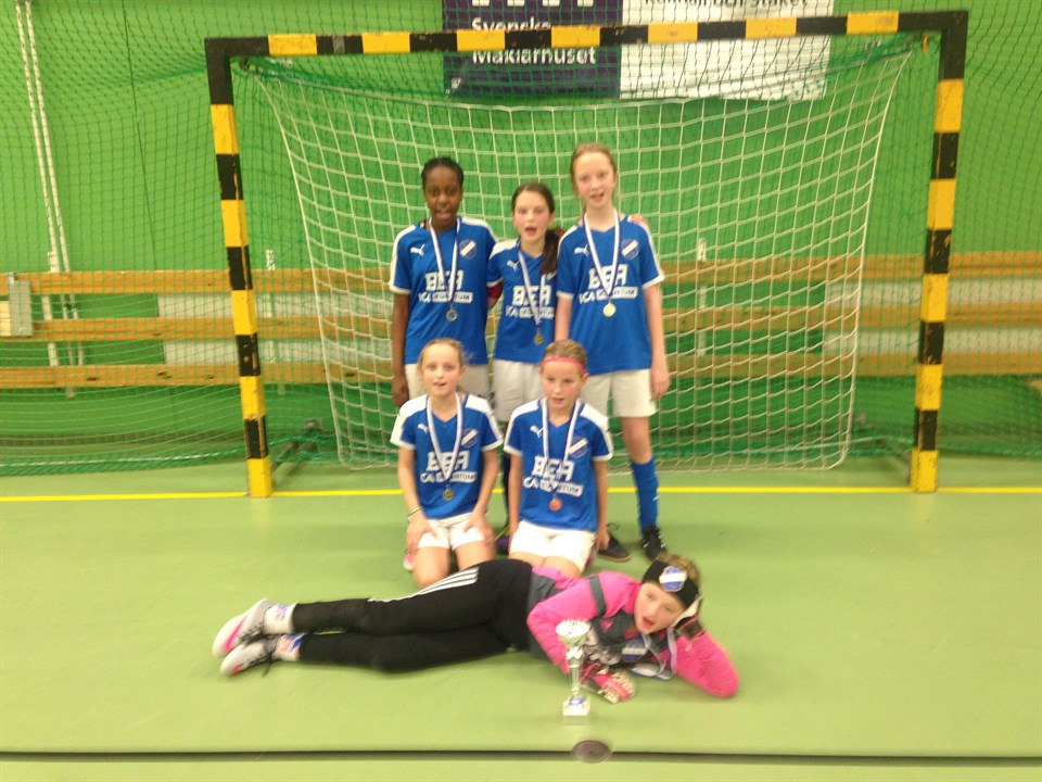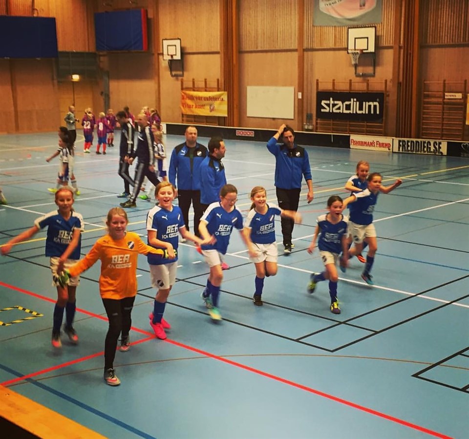 Nära finalplats i ST-cupen! Som traditionen bjuder var det dags för gäng nummer två att ta hallarna i Tyresö i besittning efter nyår, för att slåss om den åtråvärda pokalen i ST-cupen. Gruppspelet inleddes i lördags med matcher mot i tur och ordning Hanviken, Skogås-Trångsund och Tungelsta. I den första matchen inledde vi lite trevande men kunde efterhand ta hand om spelet mer och mer och skapa flera fina chanser. Rätt ologiskt då att motståndarna kunde ta ledningen, men tack vare ett fortsatt fint spel kunde vi relativt snart kvittera och inledningsmatchen slutade 1-1. I den andra matchen satte vi 1-0 redan efter någon minut, ett resultat som också stod sig tiden ut. I sista matchen mot Tungelsta sattes full fart från början, och 1-0 kom redan efter sju sekunder. Vi malde på matchen igenom och kunde avsluta med 4-0 vilket innebar gruppseger. I måndags var det så dags för ett slutspel som inleddes i gruppform. Återigen inledde vi mot Hanviken (deras andra lag) och dominansen var total. Trots ett oräkneligt antal chanser stod det dock 0-2 med fem minuter kvar. Tack vare ett fortsatt fint spel och hårt arbete kunde vi dock både reducera och slutligen kvittera med 30 sekunder kvar. Vi var sedan nära att avgöra på matchens sista spark, men fick nöja oss med 2-2. I den sista gruppspelsmatchen mot Älvsjö krävdes seger för att avancera till semifinalen, och det var egentligen aldrig något snack. Tjejerna gjorde jobbet och tog en stabil 2-0-seger. I semin väntade Segeltorp som hade gått hårt fram i sin grupp på väg till seminfinalen. Det blev också en tuff match där vi hamnade i underläge med både 1-0 och 2-0. Med ett par minuter kvar kom reduceringen och sedan var kvitteringsjakten i full gång. Nu drogs tempot och intensiteten i pressen upp, och jakten pågick hela vägen til slutsignalen. Med bara femton sekunder kvar satt ett stenhårt skott i ribban och strax efter skapade vi också en frispark i fint läge som vi tyvärr inte hann slå. Känslan var att hade matchen bara varit en minut längre så hade kvitteringen kommit. Sett till hela matchen var dock resultatet helt rättvist, men vi tar med oss att tjejerna visade på en fantistiskt fin moral och bjöd på härlig kampvilja. Starkt jobbat tjejer!
