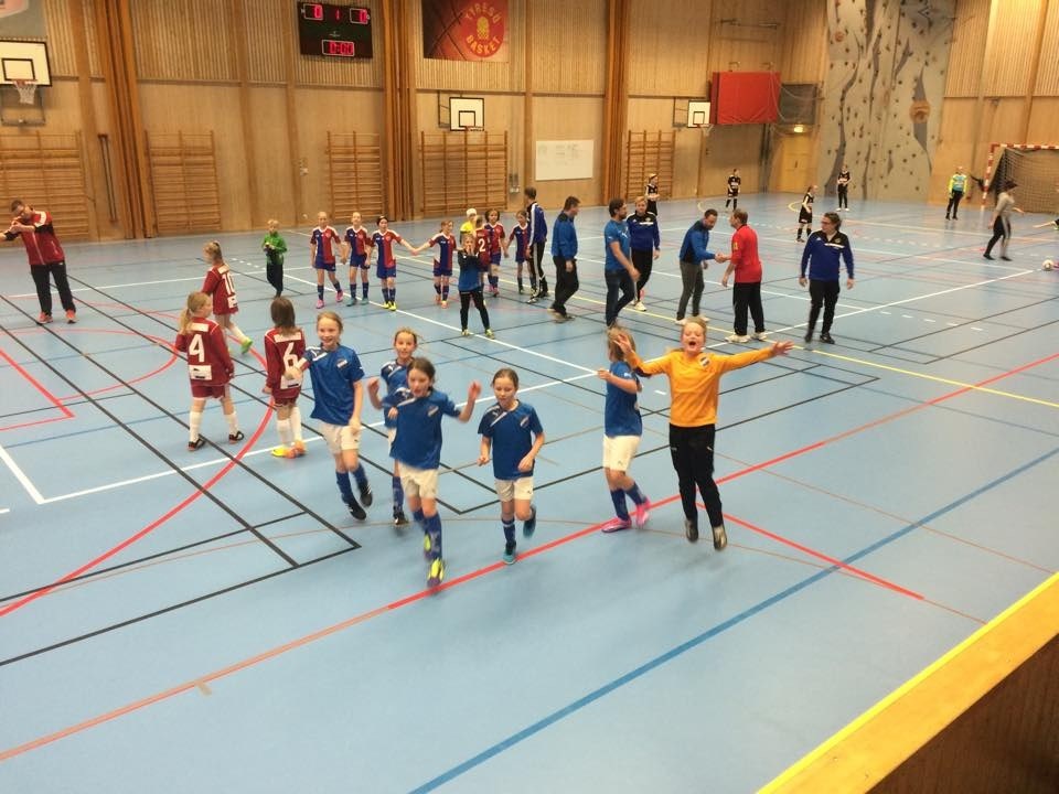 Vikingahallen i Täby Kyrkby var spelplatsen för Frejcupen. På pappret skulle detta bli en av våra största utmaningar hittills då en rad duktiga 04:a-lag stod för motståndet. I den första matchen väntade arrangörerna IK Frej, ivrigt påhejade av hemmasupportrarna. Det var dock den lilla men röststarka SSK-klacken som hade mest att glädjas åt från start. Söders blå visade verkligen att man nu har vuxit in i det höga tempo som har etablerats under våren. Det var full intensitet kombinerat med ett fint passningsspel från första sparken, och motståndarna släpptes aldrig in på de blåas planhalva. Efter fem minuters spel och ett otal fina chanser var ställningen ändå 0-0, och känslan var att mönstret från förra helgen kanske skulle upprepas. Stort spelövertag men ingen utdelning. Nu ville tjejerna annorlunda och när ettan väl kom så rullade det på. 3-0 var precis den önskestart som SSK behövde. I match nummer två fortsatte tjejerna på den inslagna vägen, och även Tyresö fick problem med den energi och spelskicklighet som SSK-spelarna visade upp. Matchen blev ändå jämnare än den första, mest pga starka motståndare. Till slut lyckades Sturpens stolthet ändå trycka in segermålet, och det firades enormt tillsammans med den tillresta klacken. Full pott efter två matcher - Makalöst tjejer! I den tredje gruppspelsmatchen väntade Saltsjö-Boo, ett fysiskt starkt och välmeriterat lag som varit i final i Aroscupen såväl som ST-cupen svår nyligen. Det blev också den klart tuffaste matchen hittills där inledningen var rätt lik övriga matcher. SSK satte hög press och bröt högt upp i banan, och sökte fina lösningar därifrån. Efter hand åt sig motståndarna in mer och mer genom längre utkast och många vunna närkamper. Matchen såg ut att sluta oavgjort, men med ett par minuter kvar spräcktes SSK-nollan. Slutforceringen innehöll en riktigt stor chans men skottet smet tyvärr precis utanför. Nu var förutsättningarna inför den avslutande gruppspelsmatchen mot Viggbyholm både enkla och svåra på samma gång. Enkla på så sätt att vinst skulle ge en plats i semifinalen, men samtidigt väldigt svåra, då Viggbyholm hade 12-0 i målskillnad och vi visste att detta var cupens troligen starkaste lag. Ett lag som bl.a. vann sin grupp i Ersans Pokal med målskillnaden 29-1 på fyra matcher.., Hursomhelst, vi gick ut med förutsättningen att spela vårt spel, och verkligen ge oss själva chansen. Just detta genomförde vi också, men den här gången var motståndet lite för tufft. Vi hamnade i den press som vi själva gillar att sätta in, och när våra backar blev hårt pressade i uppspelsfasen fick vi det jobbigt. Vi hade helt enkelt svårt att flytta upp laget, och Viggbyholm vann rättvist med 4-0, och gick sedan vidare och vann hela cupen. Därmed var äventyret över för den här gången, och även om tjejerna såklart deppade lite efter den sista förlusten, och det kändes lite surt att missa semi med minsta marginal (oavgjort mot Saltsjö-Boo hade räckt), så tar vi med oss en riktigt positiv upplevelse. Givet motståndet så är detta bland det bästa vi har presterat, och tjejerna är verkligen otroligt duktiga! Nästa helg stänger vi inomhussäsongen med Sumpan Cup!