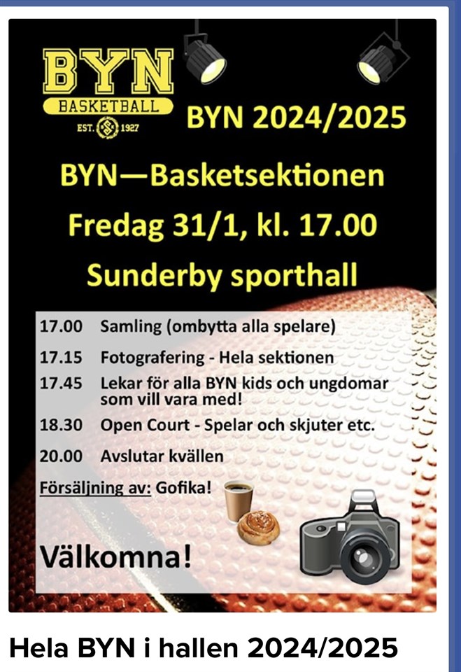 Fredag 31/1 ombytta och klara 17:00 i Sundishallen. Alla basketlag från Sunderbyn!
