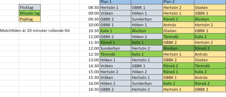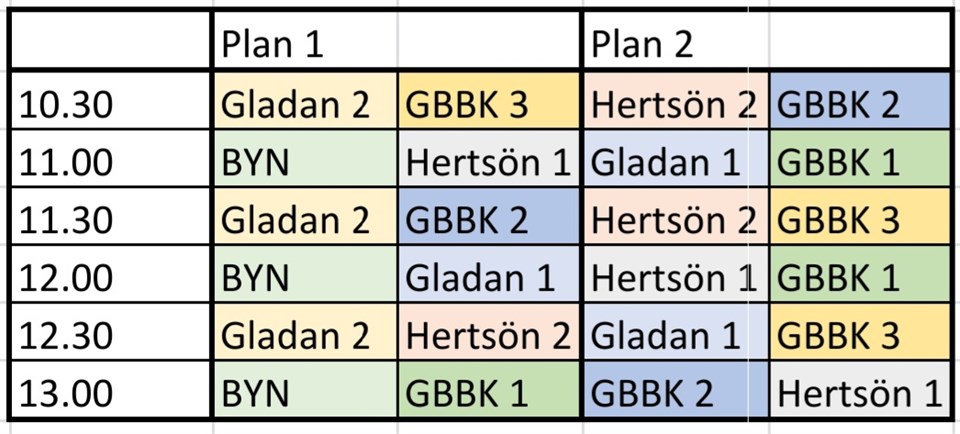 Hej Jag har gjort färdigt spelschemat för den 18/11. Vi samlas 9.45 i Sundis och ställer i ordning hallen. Sedan kan vi göra upp ett schema för fiket. För att fikabrödet ska räcka så uppskattar jag att alla behöver ta med ca. 20 bitar. Resten köper jag in. Mvh Andreas Basket F-15 12 nov 2023 0kommentarer