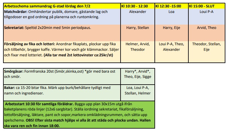 Här kommer arbetsschemat till vårat hemmasammandrag Lördag 7 februari i Gammelstads sporthall.