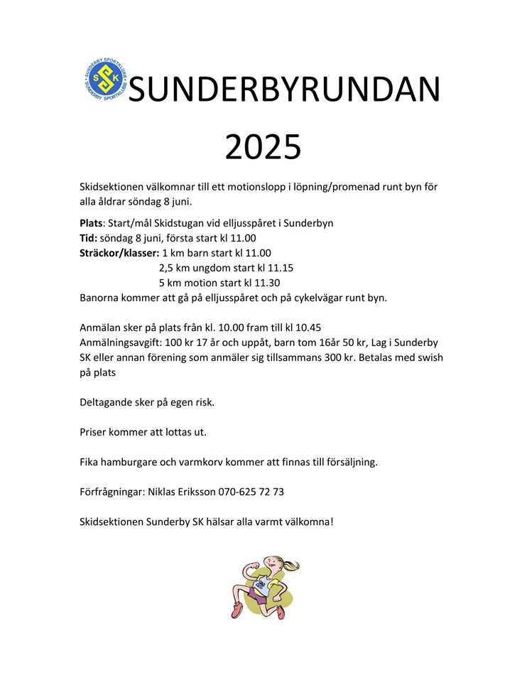 Anmälningsavgiften går till att stötta Sunderby SK - Skidors verksamhet.