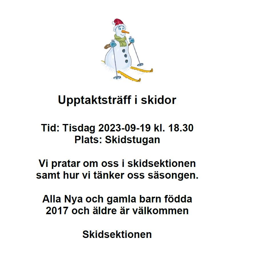 Skidsektioner bjuder in till en Upptaktsträff på tisdag den 19 september kl. 18.30 vid skidstugan. Vi pratar om oss i skidsektionen samt hur vi tänker oss säsongen. Alla nya och gamla barn födda 2017 och tidigare är välkomna! Säsongen informationsblad hittar ni HÄR Mellan gruppen 1 sep 2023 0kommentarer