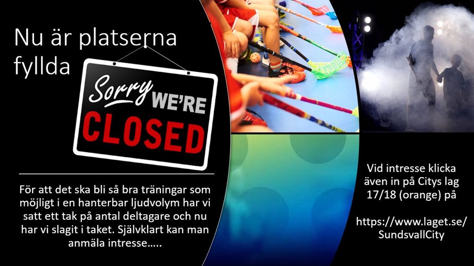 Hej alla innebandyintresserade familjer med barn födda 2017! Vi har haft en start för Sundsvall City P17 svart som vi ledare är otroligt nöjda med. Mazzor med glädje energi och lust av träna innebandy. Under de två första träningarna har vi tränat i stationer med Spel/Hinderbana/Lek ett koncept vi är mycket nöjda med. För att vi ska kunna fortsätta göra roliga träningar så har vi ledare satt ett tak på antal deltagare och det har vi nu slagit i och därmed kan vi inte ta in några fler aktiva. SJÄLVKLART kan man visa intresse om att vara med då vi kommer fylla på om någon slutar alternativt om vi känner att vi kan vara fler. Fler deltagare betyder ju också mer för oss ledare och då kommer vi även ha i beaktande om man kan tänka sig att bidra i ledargänget som tränare, support, lagledare, arrangera aktiviteter utanför innebandyhallen, intäktsgrupp osv, man kan få vara genereal manager elle r sportchef också MEN EN SAK MAN INTE FÅR VARA är headcoach, för där har vi vår alldeles egna Tobias Östholm redan... Sundsvall City har även ett lag "P/F 17/18 Orange" man kan kolla in på laget.se eller klicka här Har ni frågor så tveka inte att kontakta någon av oss ledare