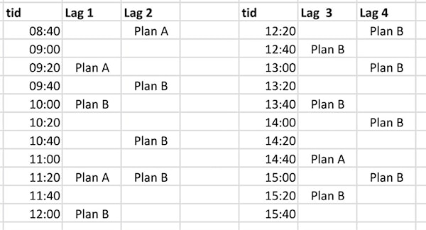 RapporteraLag 2 8:10, lag 3 12:10 och lag 4 11:50. Vi ses på lördag!/Ledarna