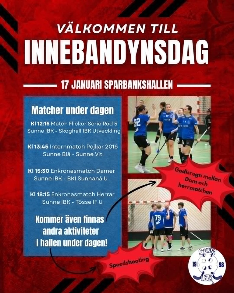 Lördagen 17 jan arrangerar vi Innebandynsdag i Sparbankshallen. Dagen avslutas med enkronamatcher för Dam och Herrlaget. Kom upp till hallen och deltag.