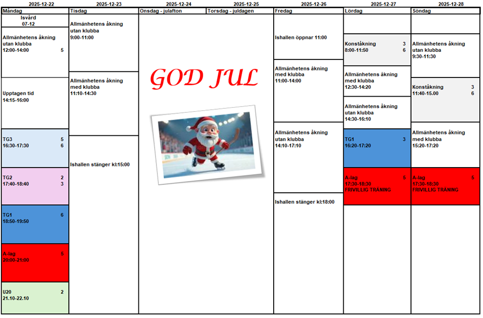 | Tre Kronors Hockeyskola Träning | 14 dec, 10:00 |