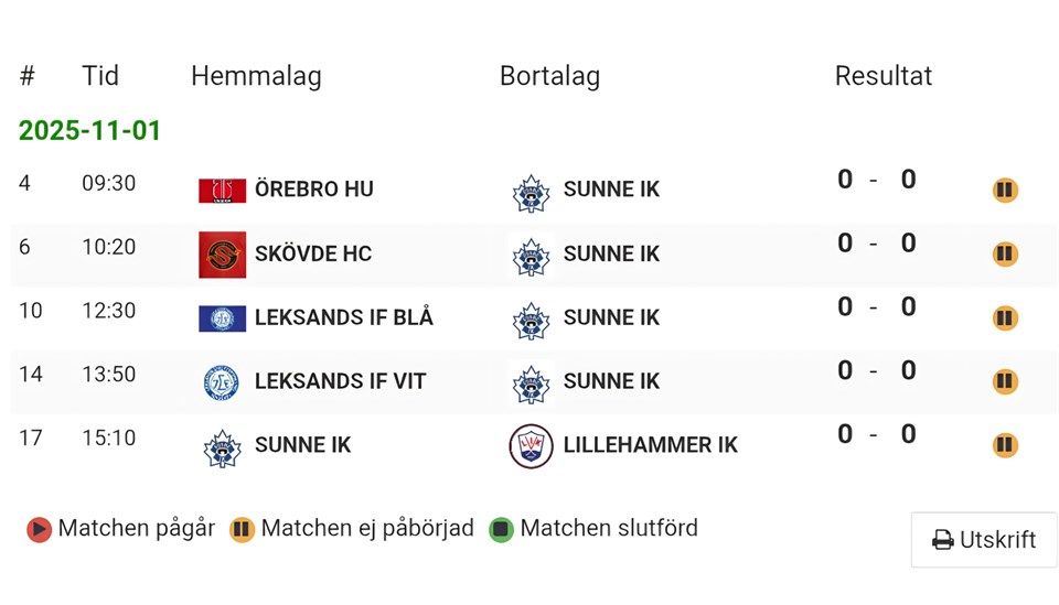| BIK Ungdom/Kristinehamns HT:2 (hemma) | 8 nov, 11:30 |