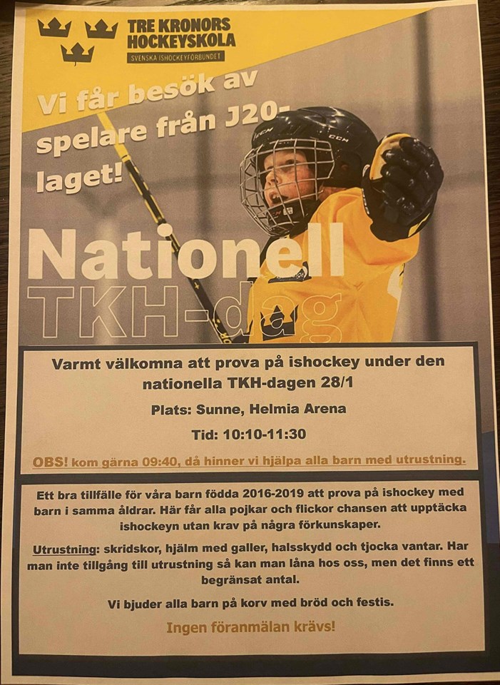 KĂ€nner du nĂ„gon som vill komma och prova pĂ„ hockeyns gemenskap och glĂ€dje ? 👑⭐ Ta med Kompisarna och fira vĂ„r nationella TKH dag ihop med oss nu pĂ„ söndag 28/1 😀 Tre Kronors Hockeyskola 25 jan 2024 0kommentarer