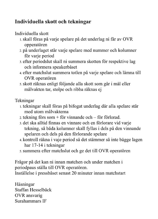 Bifogar ett dokument om vad man ska göra om man sitter i statistikrummet och bilder på när man har sitt arbetsplats. Vid förhinder, kontakta din lagförälder och försök byta med någon i laget.