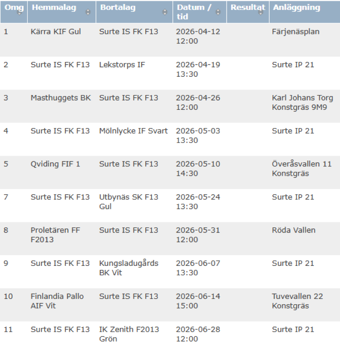 Fyll i din e-postadress för gratis uppdateringar om Surte IS F-13