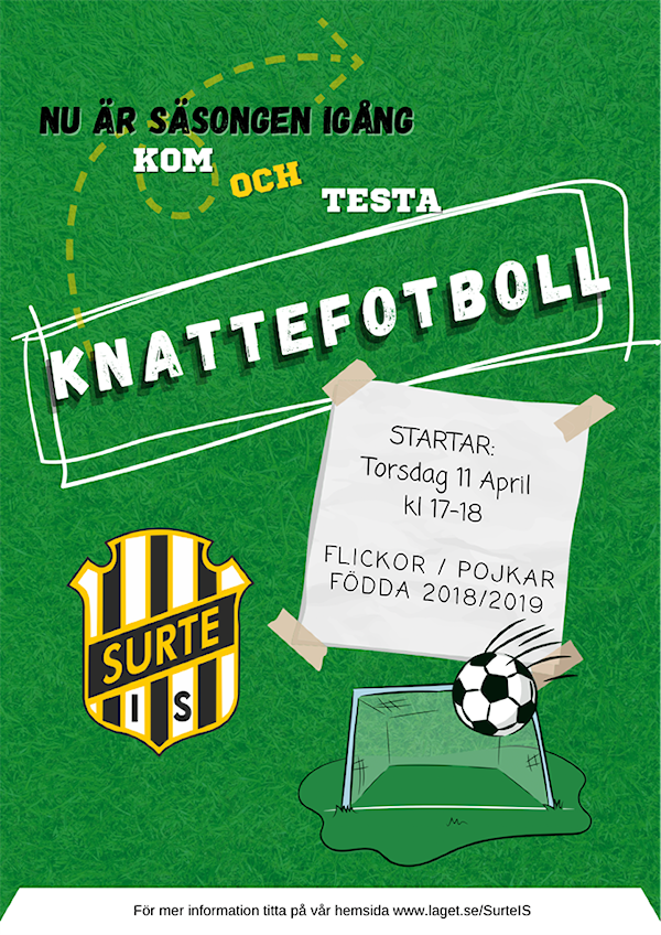 Utan ert engagemang så kommer ett lag inte att kunna start upp och fortsätta träna på Surte IP. Är ni intresserade av att ställa upp som ledare för knattelaget samt anmäla ert barn till den första träningen, så anmäler ni er under "Bli Medlem" på vår laget.se sida.