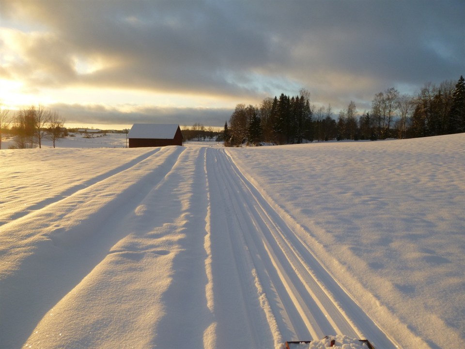 Skidspåret går nästan som vanligt. Det går bra att parkera vid Missionskyrkan och stiga på där, riktningen är mot ladugården. Man bör se upp för en del ojämnheter, det är plöjd åker i början. Spåret är kört idag 19 december och bör enligt väderkartan hålla sig några dagar. Bilden är tagen bakom Norrgården. Svarttorps Byalag IK 19 dec 2012 0kommentarer