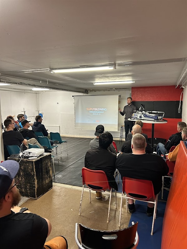 19 st Materialare från Föreningen och från MoDo var samlade och fick en mkt bra genomgång av skridskoslipen.