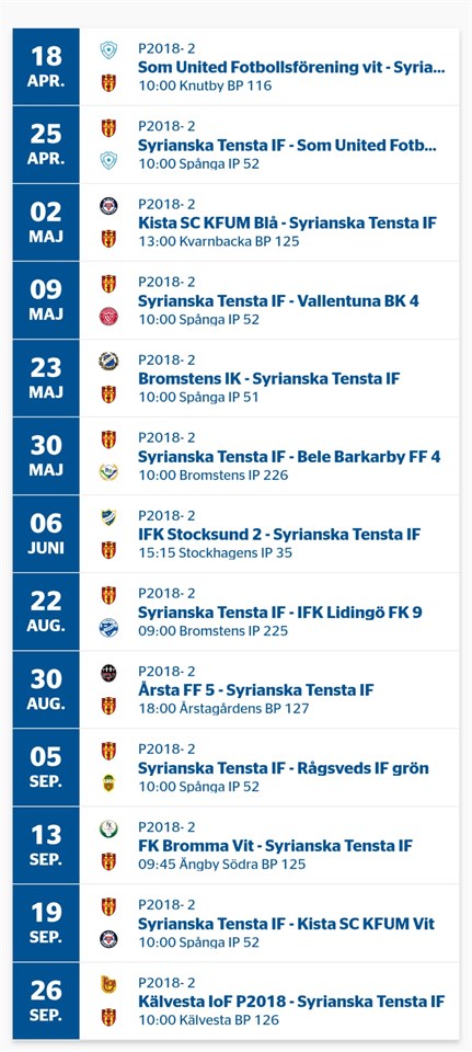 Klicka på bekräftelselänken i det mejl vi skickat dig för att börja ta emot uppdateringar från Syrianska Tensta IF P-18/19.