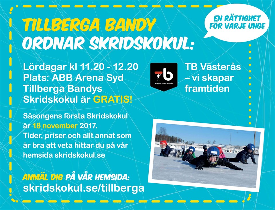 Den 18 November börjar vi med skridskokul igen, självklart så är den helt gratis även i år tack vare vår partner Adsum. Kom och lär er åka skridskor och ha kul med oss på ABB arena syd (bandyhallen) Lördagar November till Mars i ABB arena Syd kl 11,20-12,20. Föranmäl på denna länk. (http://www.skridskokul.se/tillberga/anmal-dig-till-skridskokul/) Bandyskolan/Knattelag 27 okt 2017 0kommentarer
