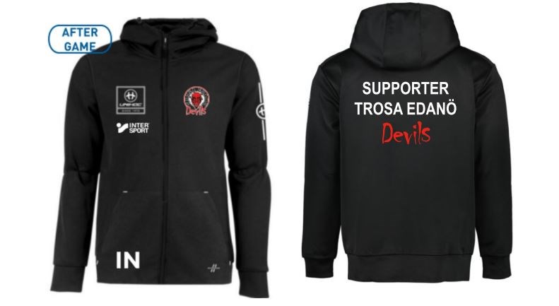 Supporter Hoddie! Visa att du är en stolt Devils supporter! Nu till helgen och våran hemmamatch kommer det vara möjligt att köpa denna grymt snygga supporterhoddie, så förutom en snygg hoddie så stödjer du även klubben. Säljs i kiosken. Vi vill se en hel läktare med Trosa Edanö Supportrar! Mvh Ledarna