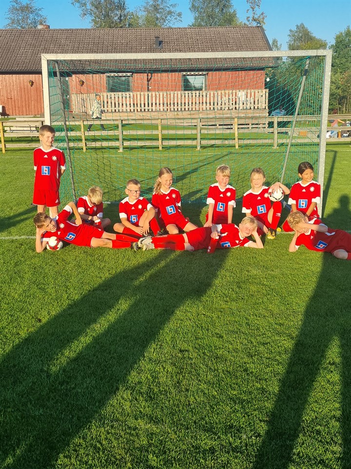 Blir lite uppvärmning å sedan match och efter det en korv till grabbarna.