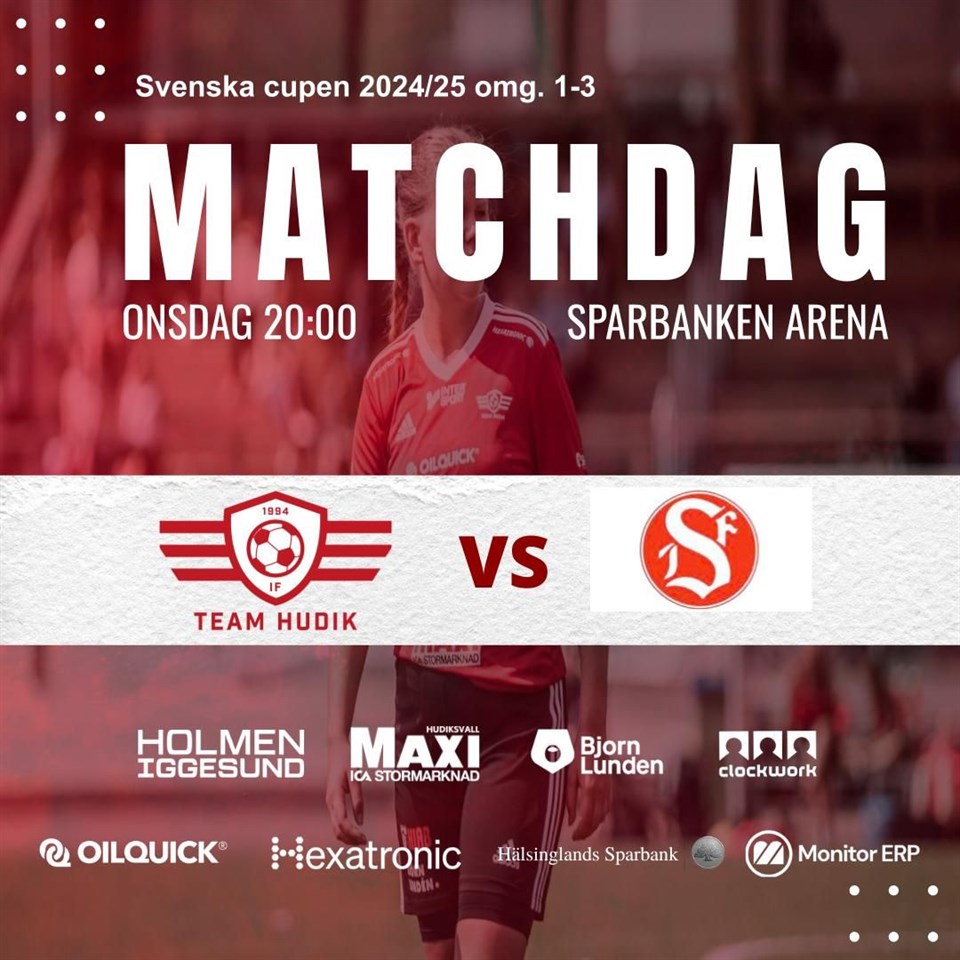Onsdagen den 5 juni kl. 20:00 spelar IF Team Hudik en spännande match mot division 1-laget Sandviken på vår hemmaplan, Sparbanken Arena. **Kom och heja fram vårt lag!** Under matchen kommer vi att ha en kiosk med hembakat fika och andra godsaker. Ta med familj och vänner för en trevlig kväll med fotboll och gemenskap. Hälsinglands Sparbank är match- och bollsponsor och utser bl.a. matchens lirare ⚽ Hexatronic bjuder alla under 18 år på fri entré. Vi ses på onsdag! Heja IF Team Hudik! IF Team Hudik - Sandvikens IF Ladda gärna ner appen Min Fotboll
