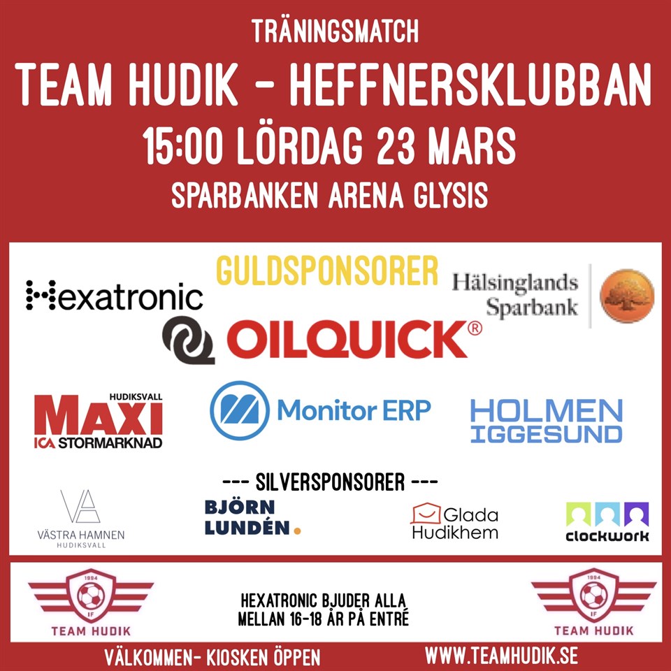 IF Team Hudik välkomnar Heffnersklubban för en träningsmatch. Den spelas på Sparbanken Arena Glysis 23 mars och startar kl 15:00. Vi ses där:) F15/2009 22 mar 2024 0kommentarer