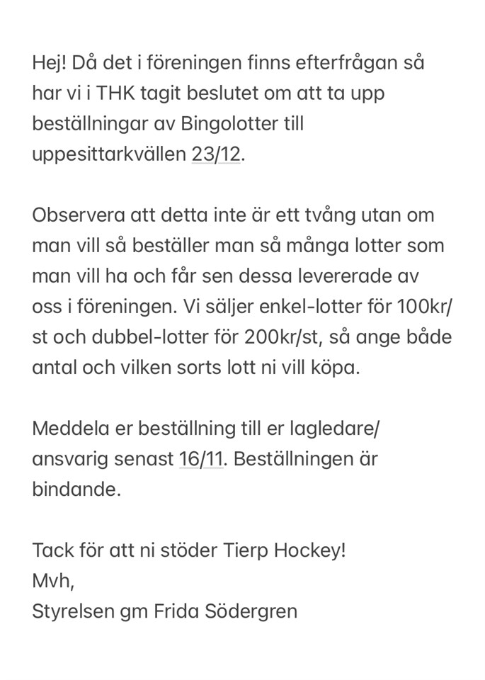 Klicka på bekräftelselänken i det mejl vi skickat dig för att börja ta emot uppdateringar från Tierps HK Hockeyskolan.
