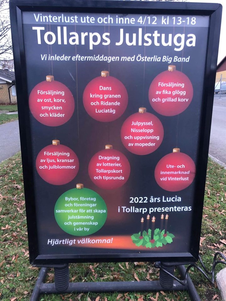 Hej! För alla barn som vill röra lite på sig anordnar TIF Nisseloppet på Tollarps julstuga. Var: Utanför Vinterlust När: Starten går 14.30 den 4/12 Loppet är ca 0,5 km långt eller 1 km om man väljer att springa två varv. Alla som har tomteluva på springer gratis, annars swishar ni 20kr på plats. Anmälan till tollarpsif.fotboll@gmail.com senast den 3/12 eller efteranmälan på plats, fram till en halvtimme innan start. God Jul